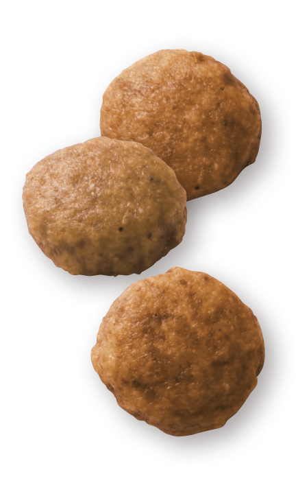 米粉、加水分解大豆タンパク(消化率90%以上)、動物性油脂、米、チコリー、大豆油(オメガ6系不飽和脂肪酸源)、植物性繊維、魚油(オメガ3系不飽和脂肪酸〔EPA+DHA〕源)、フラクトオリゴ糖、酪酸ナトリウム、ルリチシャ油、マリーゴールド(ルテイン源)、アミノ酸類(タウリン、DL-メチオニン)、ゼオライト、ミネラル類 (Ca、Cl、Na、K、P、Zn、Mn、Fe、Cu、Se、I)、ビタミン類 (コリン、E、ナイアシン、パントテン酸カルシウム、ビオチン、B6、B2、B1、A、葉酸、B12、D3)、保存料(ソルビン酸カリウム)、酸化防止剤(ミックストコフェロール、ローズマリーエキス)