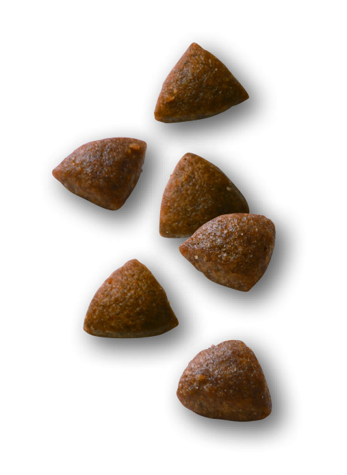 肉類(鶏、七面鳥)、米、動物性油脂、超高消化性小麦タンパク(消化率90%以上)、植物性繊維、コーングルテン、加水分解レバー(鶏、七面鳥)、卵パウダー、ビートパルプ、魚油(EPA/DHA源)、大豆油、酵母および酵母エキス、サイリウム、フラクトオリゴ糖、加水分解酵母(マンナンオリゴ糖源)、マリーゴールドエキス(ルテイン源)、アミノ酸類(DL-メチオニン、タウリン)、ゼオライト、ミネラル類(Cl、K、Na、Ca、P、Mg、Zn、Mn、Fe、Cu、I、Se)、ビタミン類(A、コリン、D3、E、C、ナイアシン、パントテン酸カルシウム、B2、B6、B1、葉酸、ビオチン、B12)、酸化防止剤(ミックストコフェロール、ローズマリーエキス)