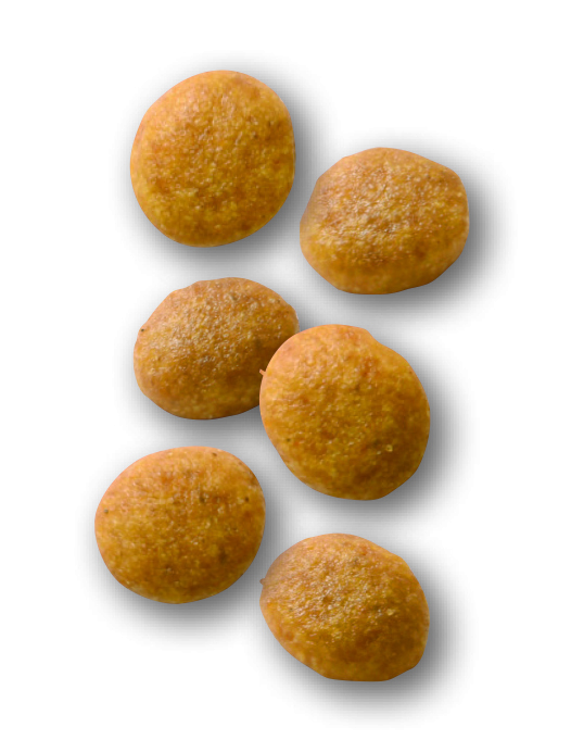 米、動物性油脂、コーン、超高消化性小麦タンパク(消化率90%以上)、コーングルテン、植物性繊維、加水分解タンパク(鶏、七面鳥、魚)、超高消化性加水分解大豆タンパク(消化率90%以上)、チコリー、大豆油、魚油(オメガ3系不飽和脂肪酸〔EPA+DHA〕源)、フラクトオリゴ糖、藻類油(EPA+DHA源)、加水分解酵母(マンナンオリゴ糖源)、マリーゴールド(ルテイン源)、アミノ酸類(L-アルギニン、DL-メチオニン、L-リジン、タウリン、L-カルニチン)、ゼオライト、ミネラル類(K、Cl、Ca、P、Zn、Fe、Na、Mn、Se、Cu、I)、ビタミン類(コリン、E、C、ナイアシン、ビオチン、B2、パントテン酸カルシウム、A、B1、B6、B12、葉酸、D3、K3)、酸化防止剤(ミックストコフェロール、ローズマリーエキス)