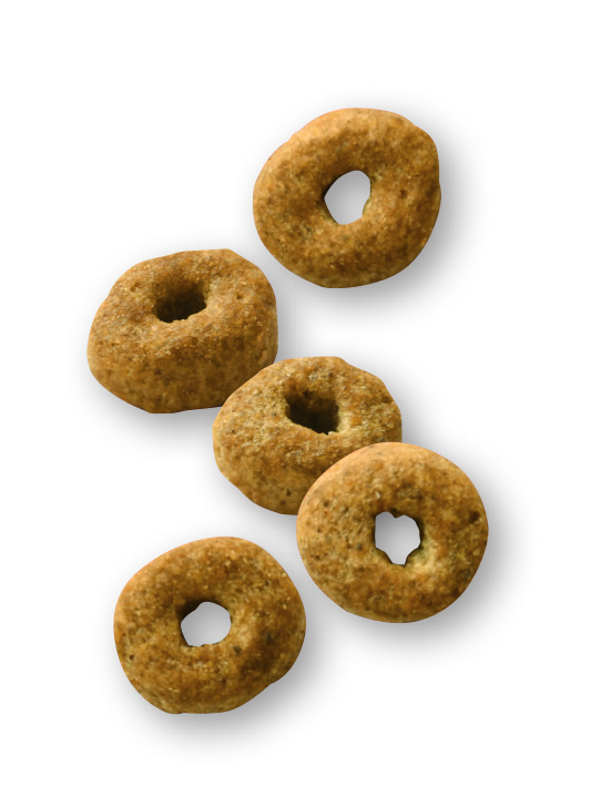 大麦、コーン、豚タンパク、肉類(鶏、七面鳥)、小麦粉、植物性繊維、超高消化性小麦タンパク(消化率90%以上)、加水分解タンパク(鶏、七面鳥)、動物性油脂、チコリー、魚油(オメガ3系不飽和脂肪酸〔EPA+DHA〕源)、大豆油、サイリウム、フラクトオリゴ糖、マリーゴールド、アミノ酸類(DL-メチオニン、L-リジン、タウリン、L-カルニチン)、ゼオライト、ポリリン酸ナトリウム、ミネラル類(Cl、Na、K、Ca、Zn、Mn、Fe、Cu、I、Se)、ビタミン類(コリン、E、ナイアシン、C、パントテン酸カルシウム、B6、B2、B1、葉酸、A、ビオチン、B12、D3)、保存料(ソルビン酸カリウム)、酸化防止剤(ミックストコフェロール、ローズマリーエキス)