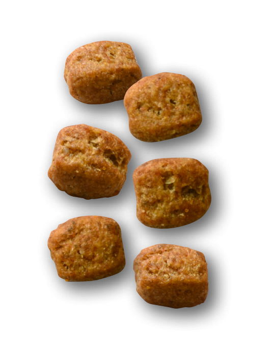 コーン、超高消化性小麦タンパク(消化率90%以上)、コーンフラワー、小麦、コーングルテン、動物性油脂、肉類(鶏、七面鳥)、植物性繊維、米、加水分解タンパク(鶏、七面鳥)、チコリー、魚油(オメガ3系不飽和脂肪酸〔EPA+DHA〕源)、大豆油、トマト(リコピン源)、サイリウム、フラクトオリゴ糖、緑イ貝、加水分解酵母(マンナンオリゴ糖源)、ルリチシャ油、グルコサミン、菜種レシチン、マリーゴールドエキス(ルテイン源)、加水分解軟骨(コンドロイチン硫酸源)、アミノ酸類(L-リジン、DL-メチオニン、タウリン、L-トリプトファン、L-チロシン、L-カルニチン)、ミネラル類(Cl、Ca、K、Na、Zn、Mn、Fe、Cu、I、Se)、ビタミン類(A、コリン、D3、E、C、ナイアシン、パントテン酸カルシウム、B2、B6、B1、葉酸、ビオチン、B12)、酸化防止剤(ミックストコフェロール、ローズマリーエキス)