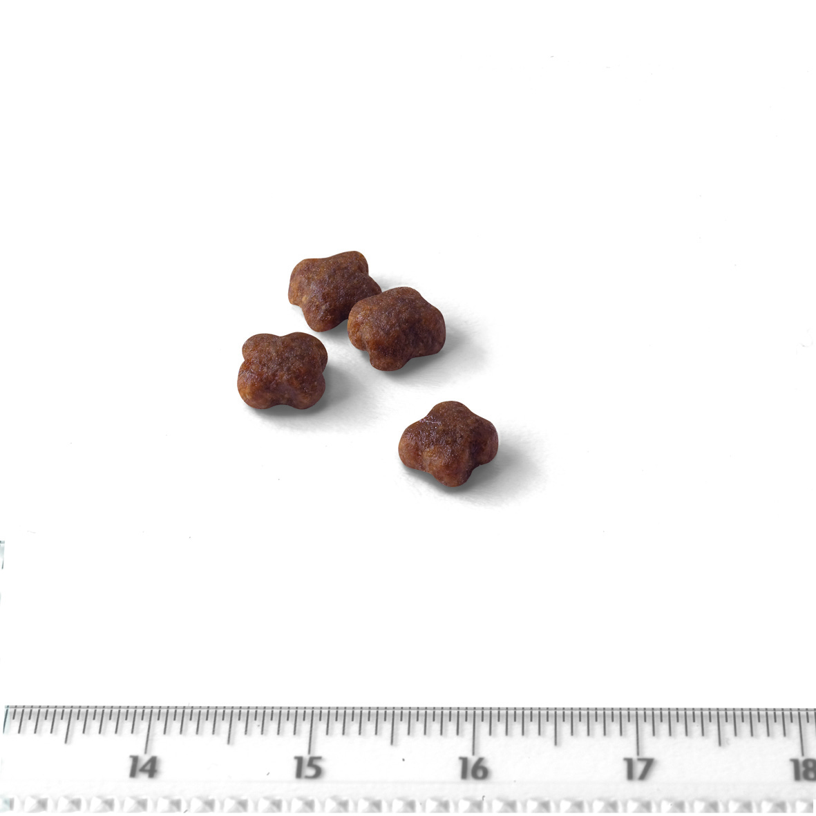 肉類(鶏、七面鳥、ダック)、動物性油脂、米、超高消化性小麦タンパク(消化率90%以上)、コーンフラワー、酵母および酵母エキス、ビートパルプ、加水分解タンパク(鶏、七面鳥、魚)、植物性繊維、大豆油、魚油(オメガ3系不飽和脂肪酸〔EPA+DHA〕源)、フラクトオリゴ糖、加水分解酵母(マンナンオリゴ糖及びβ-グルカン源)、藻類油(DHA源)、マリーゴールド(ルテイン源)、アミノ酸類(L-リジン、タウリン、DL-メチオニン)、ゼオライト、β-カロテン、ミネラル類(Cl、K、Ca、P、Na、Zn、Mn、Mg、Fe、Cu、I 、Se)、ビタミン類(コリン、E、C、ナイアシン、ビオチン、B2、A、パントテン酸カルシウム、B6、B1、B12、葉酸、D3)、酸化防止剤(ミックストコフェロール、ローズマリーエキス)