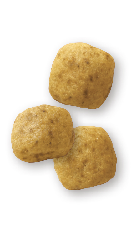 米粉、加水分解大豆タンパク(消化率90%以上)、米、動物性油脂、加水分解レバー(鶏、七面鳥)、ビートパルプ、大豆油、魚油(オメガ3系不飽和脂肪酸〔EPA+DHA〕源)、フラクトオリゴ糖、ルリチシャ油、マリーゴールド(ルテイン源)、アミノ酸類(タウリン、DL-メチオニン)、ゼオライト、ミネラル類(Cl、Ca、K、P、Na、Zn、Mg、Mn、Fe、Cu、Se)、ビタミン類(コリン、E、ナイアシン、C、パントテン酸カルシウム、ビオチン、B6、B2、B1、A、葉酸、B12、D3)、保存料(ソルビン酸カリウム)、酸化防止剤(ミックストコフェロール、ローズマリーエキス)