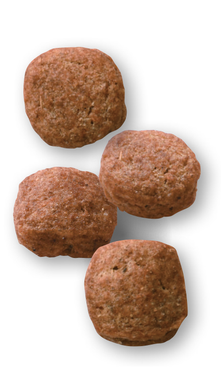 タピオカ、ダック、植物性繊維、加水分解レバー(鶏、七面鳥)、動物性油脂、ビートパルプ、魚油(オメガ3系不飽和脂肪酸〔EPA+DHA〕源)、サイリウム、大豆油、フラクトオリゴ糖、マリーゴールド(ルテイン源)、アミノ酸類(DL-メチオニン、L-リジン、タウリン、L-トリプトファン)、ミネラル類(Cl、K、Ca、Na、P、Zn、Mn、Mg、Fe、Cu、Se)、ビタミン類(コリン、E、ナイアシン、C、パントテン酸カルシウム、ビオチン、B6、B2、B1、A、葉酸、B12、D3)、保存料(ソルビン酸カリウム)、酸化防止剤(ミックストコフェロール、ローズマリーエキス)